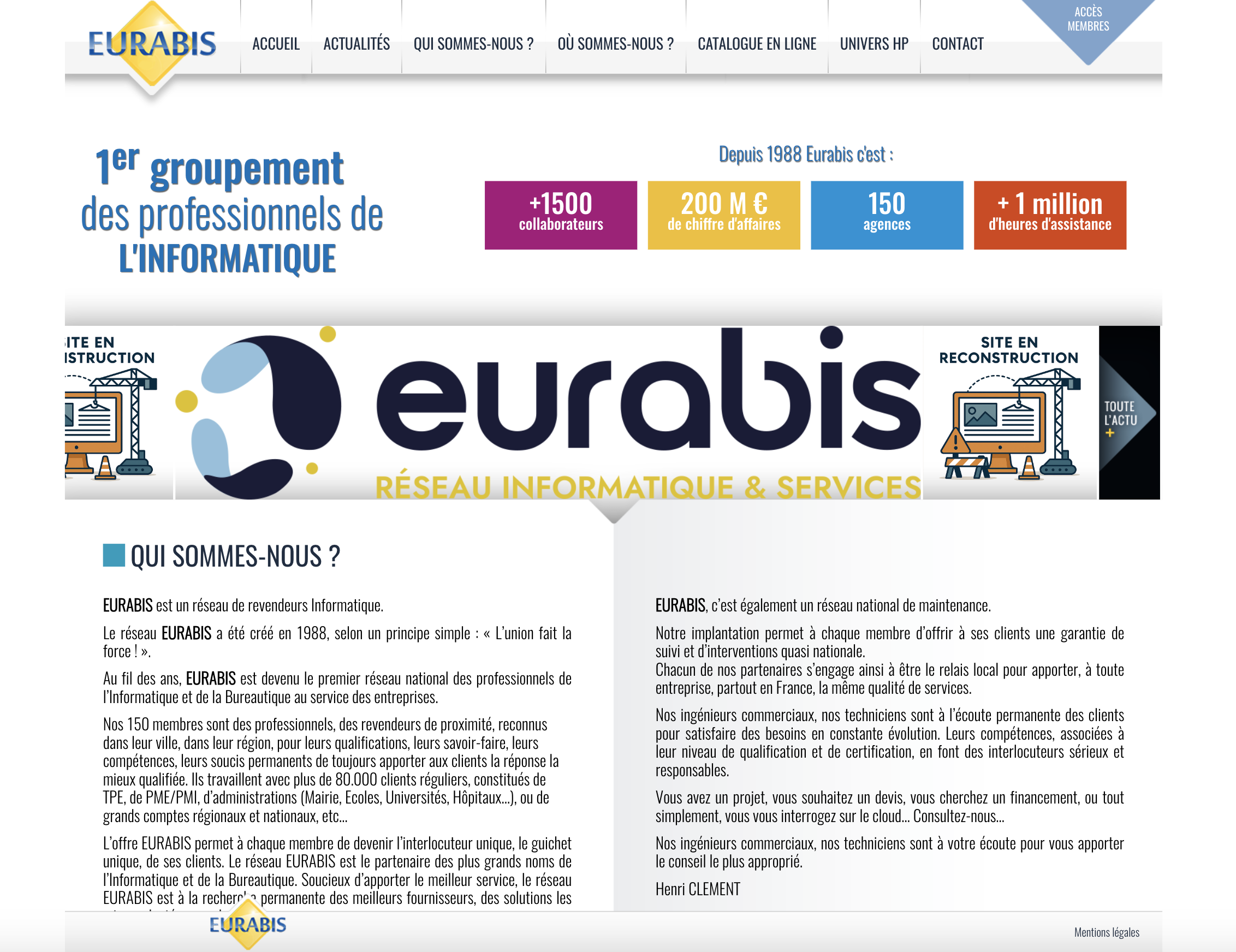 Evolution du site Eurabis avec création des rubriques Actualités et Showcase HP.