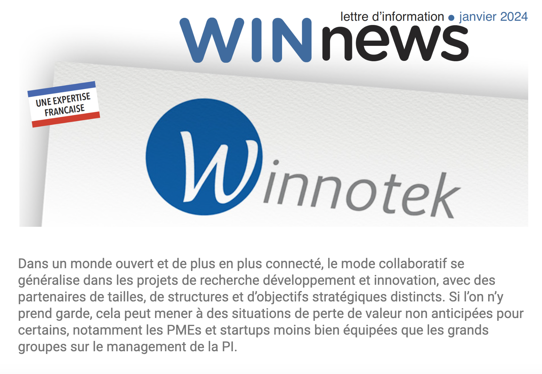 Création d’une e-newsletter pour Winnotek avec routage et tracking.
